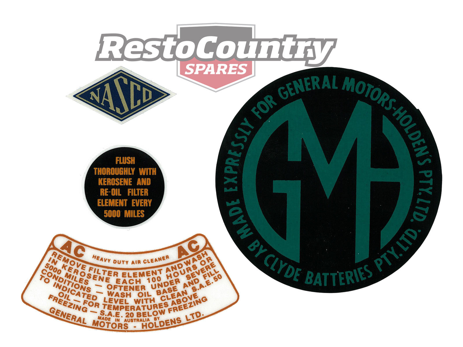 Holden Engine Bay Decal Sticker Kit FE FC Battery + Oil + Air + Horn + AC Nasco - ED1039