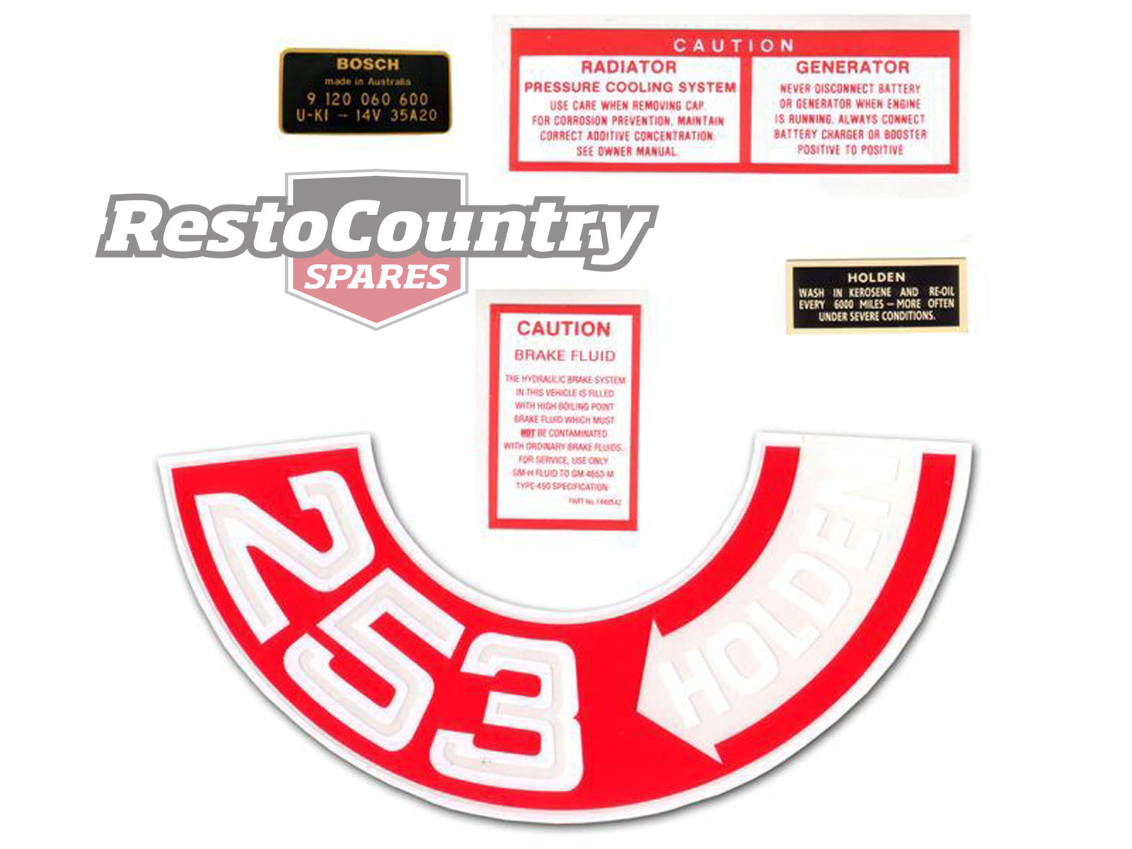 Holden Engine Decal Sticker Kit HT HG 253 Oil + Air + Brake + alternator + Rad - ED1016